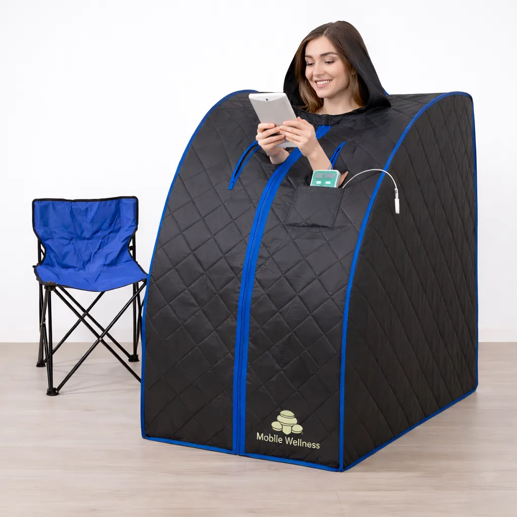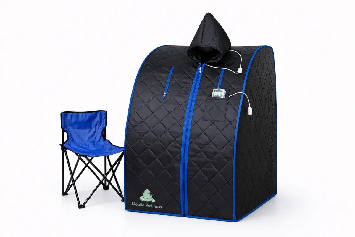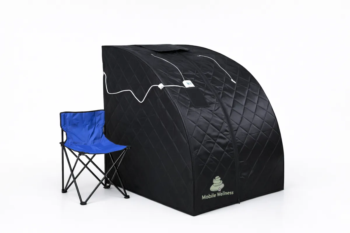 This portable dry sauna is designed for deep heat therapy relaxation and recovery without steam or water. It delivers consistent infrared style heat in a compact foldable design that fits easily into a carry on suitcase.